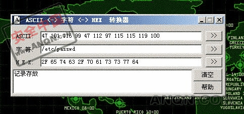 我们这里用的load_file(char())这个函数我们需要把/etc/passwd转化成16进制的我们请出asc2chr这个工具来帮我们完成转化工作